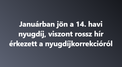 Januárban jön a 14. havi nyugdíj, de a novemberi nyugdíjkorrekcióval kapcsolatban kedvezőtlen hírek érkeztek. Bár a kormány megerősítette, hogy elkötelezett a plusz havi juttatás bevezetése mellett, az idősek számára most nem várható jelentős anyagi javulás.