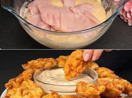 – Mártsd a fűszerezett csirkedarabokat a tésztába.