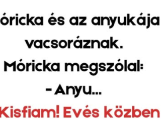 Móricka és az anyukája vacsoráznak.Móricka megszólal:– Anyu… – Kisfiam! Evés közben nem beszélünk, majd vagyora után elmondod!– De anyu…– Mit mondtam? Vacsora után:– Mit akartál […]